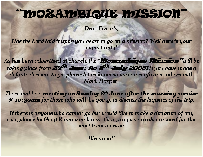 Text Box: "MOZAMBIQUE MISSION"Dear Friends,
