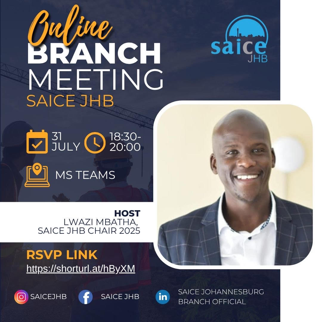 [Saice-jhb-branch] SAICE JHB Branch Meeting : 31 July 2025 @6:30pm