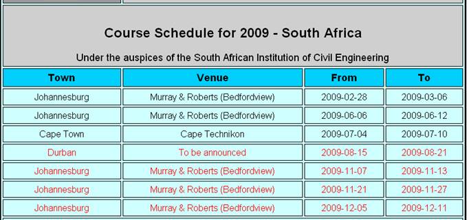 To register for the course, please contact Dawn Hermanus at SAICE (011)