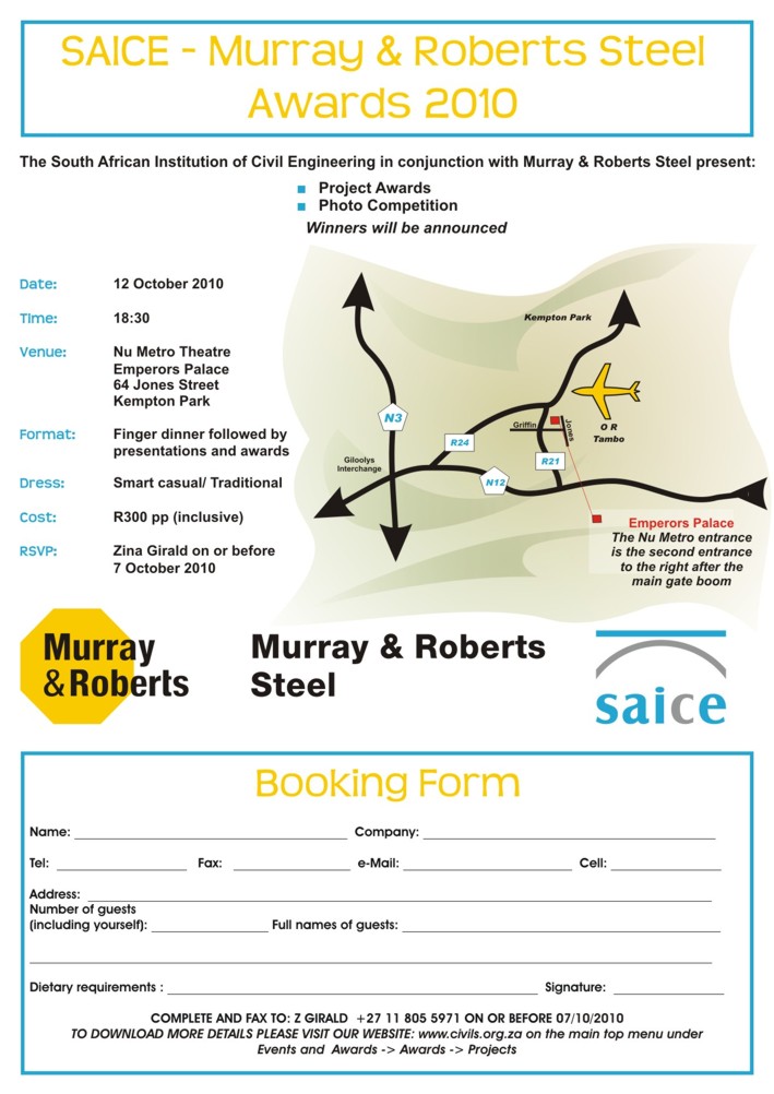 [Saice] REMINDER: Invitation to the SAICE Murray & Roberts Steel Awards 2010