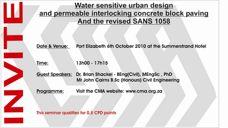 [Saice] Permeable Paving Seminar on 6.10.10 P E: CPD Points 0.5