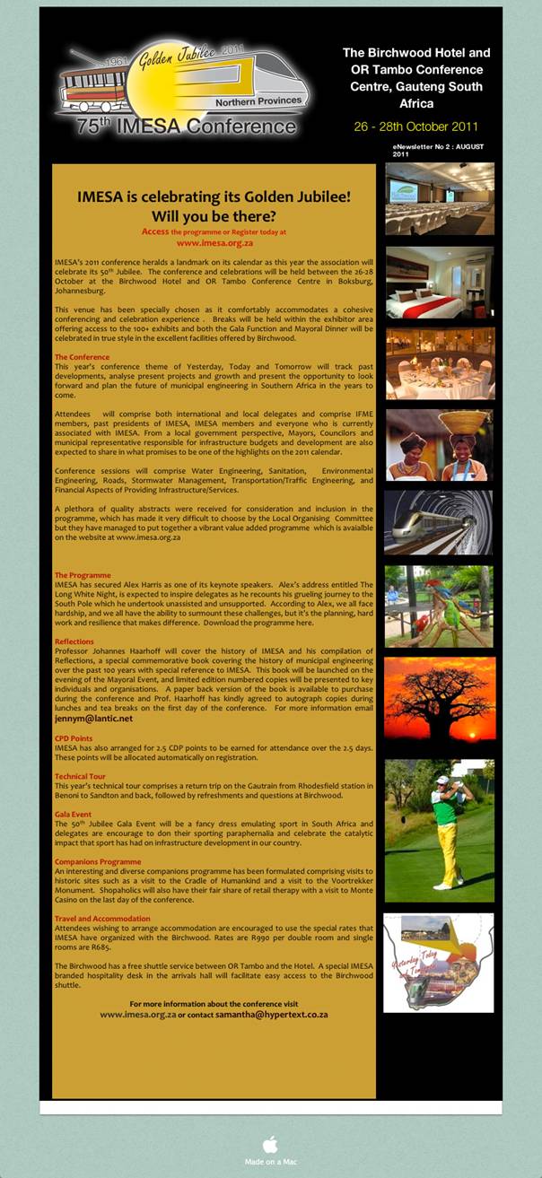 Please Note: This email is sent on behalf of IMESA.