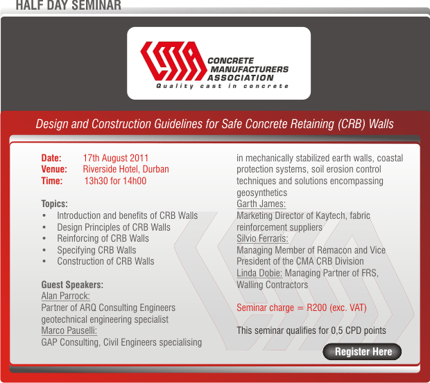 [Saice] CMA Concrete Retaining Block Wall Technical Seminar comes to Durban 17th August 2011